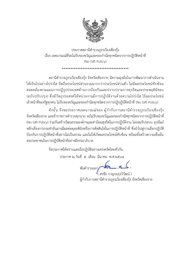 018. ประกาศนโยบายต่อต้านการรับสินบน (Anti-Bribery Policy)