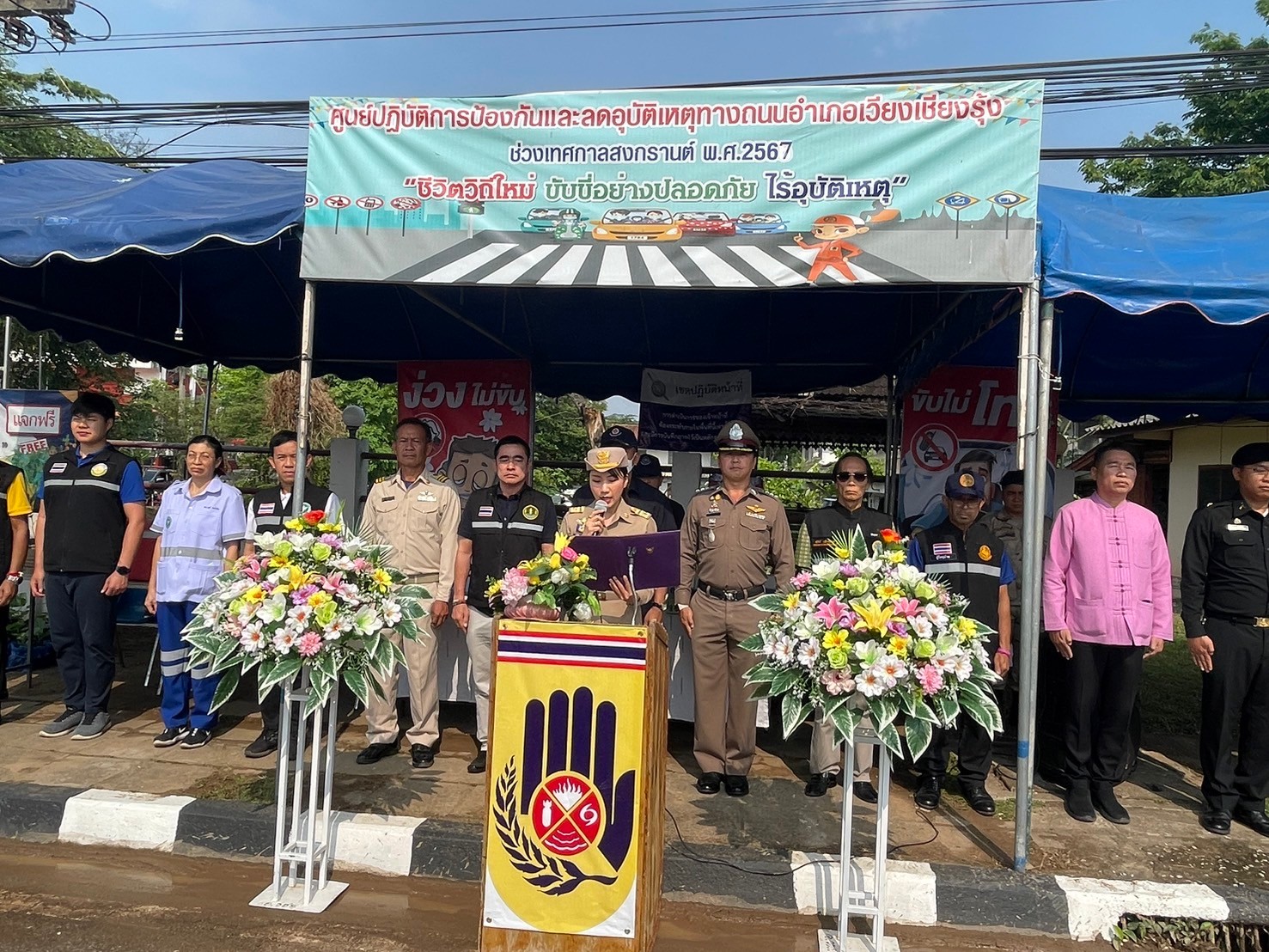 โดยมี นางสาวมินทิรา ภดาประสงค์ นายอำเภอเวียงเชียงรุ้งเป็นประธานในพิธีเปิดศูนย์การป้องกันและลดอุบัติเหตุทางถนนช่วงเทศกาลสงกรานต์ 2567