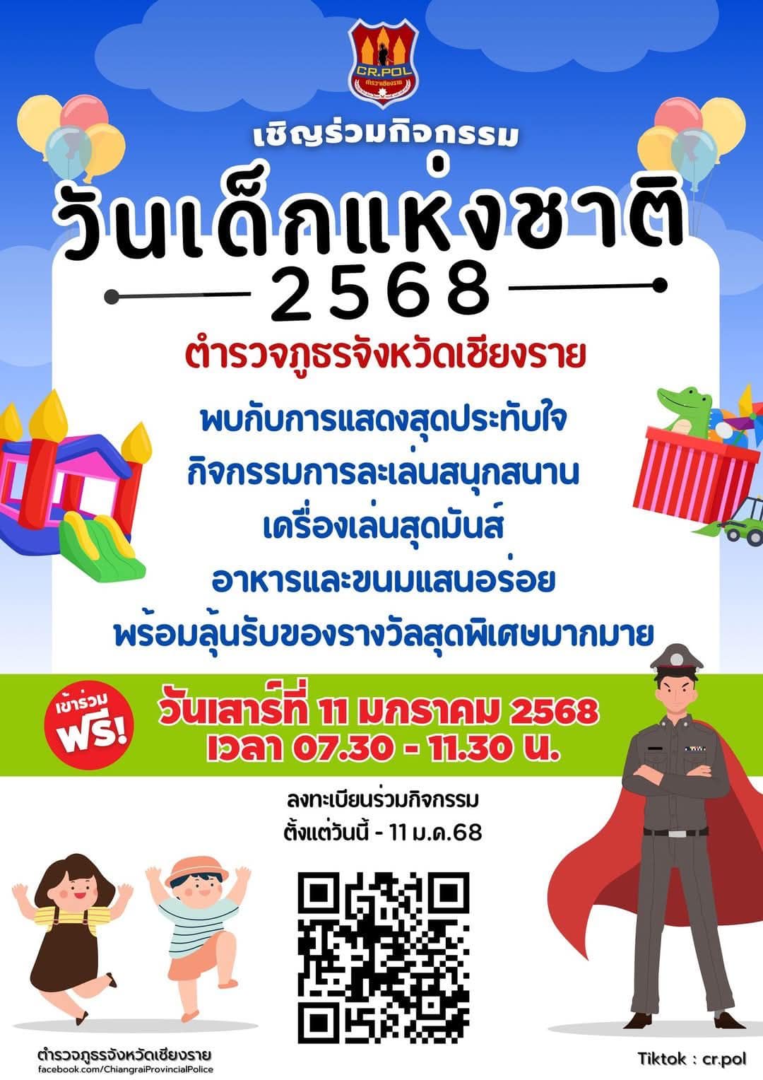 ตำรวจภูธรจังหวัดเชียงรายขอเชิญร่วมงานวันเด็กแห่งชาติ ประจำปี 2568!